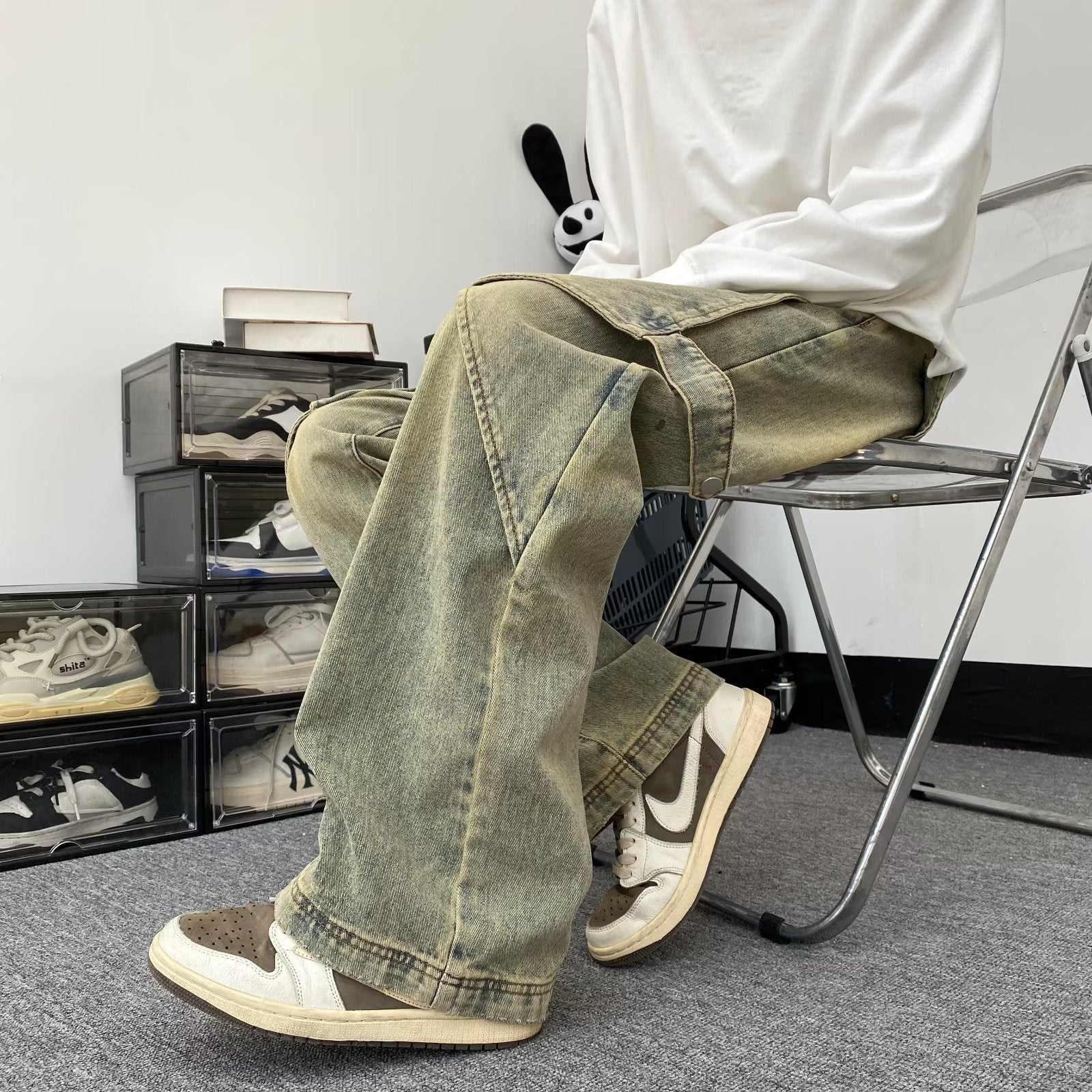 Embrace retro style with Jeremy's wide-leg jeans, perfect for spring and autumn. These jeans feature a mid-waist fit and a classic zipper fly, crafted from quality cotton denim. Designed for teenagers and adults, they offer comfort with micro elasticity and a timeless straight-leg silhouette. Available in the unique Yellow Mud color, they're ideal for daily wear. Sizes range from S to 3XL.