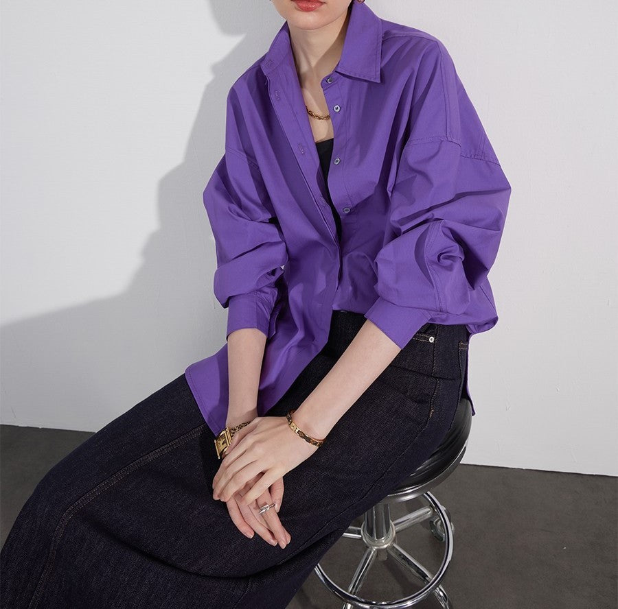 Discover casual elegance with our relaxed long sleeve shirt featuring a sleek polo collar. Crafted from a blend of cotton and premium polyester, it offers both comfort and style for any occasion. The shirt's unique 3D pattern design adds a modern touch. Available in classic purple and white, this versatile piece is a wardrobe essential. Sizes range from S to XL. Please refer to the size guide for the perfect fit.