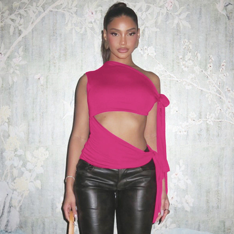 Embrace a chic street style with Lauren's Retro Ribbon Sleeveless Slim Vest. This stunning vest in vibrant rose red is crafted from premium vegan fabric, combining 95% polyester and 5% spandex for a comfortable and flattering fit. Featuring a trendy cropped length and sleeveless design, it's perfect for layering or wearing solo. Ideal for fashion-forward individuals, this vest showcases unique collage stitching and an exposed navel for a bold statement. Available in sizes S, M, and L, it's tailored for a modern slim fit.