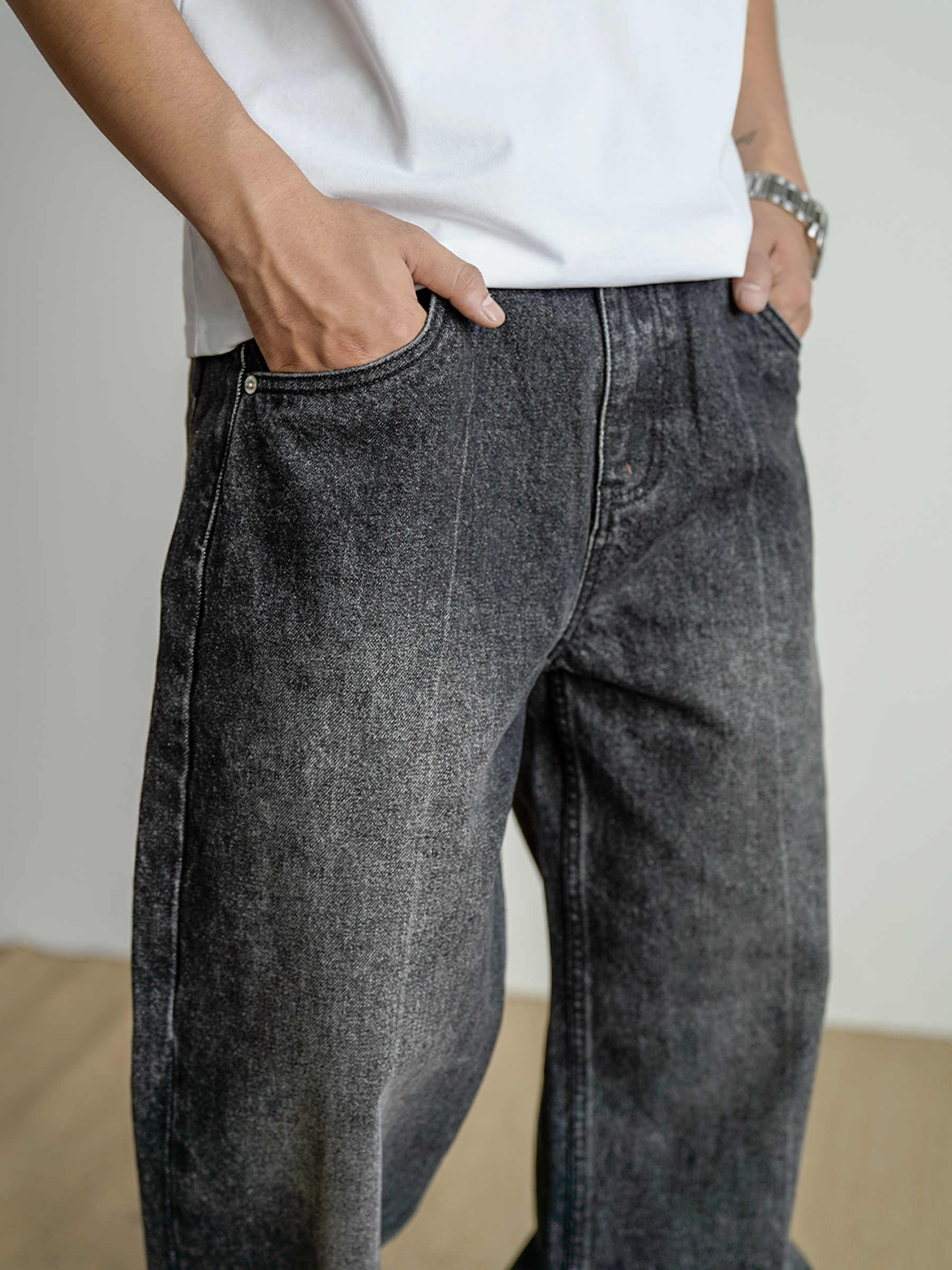 Experience effortless style with our Michael loose straight washed distressed jeans. Crafted for comfort and versatility, these jeans feature a mid-waist design and are made from a blend of 88.5% cotton and 8.1% polyester fiber, ensuring a soft and durable fit. Available in classic black, they are perfect for any casual occasion. Remember to select a size larger if you are between sizes, and refer to our size chart for the best fit. Please note, slight color variations may occur due to different screen displays.