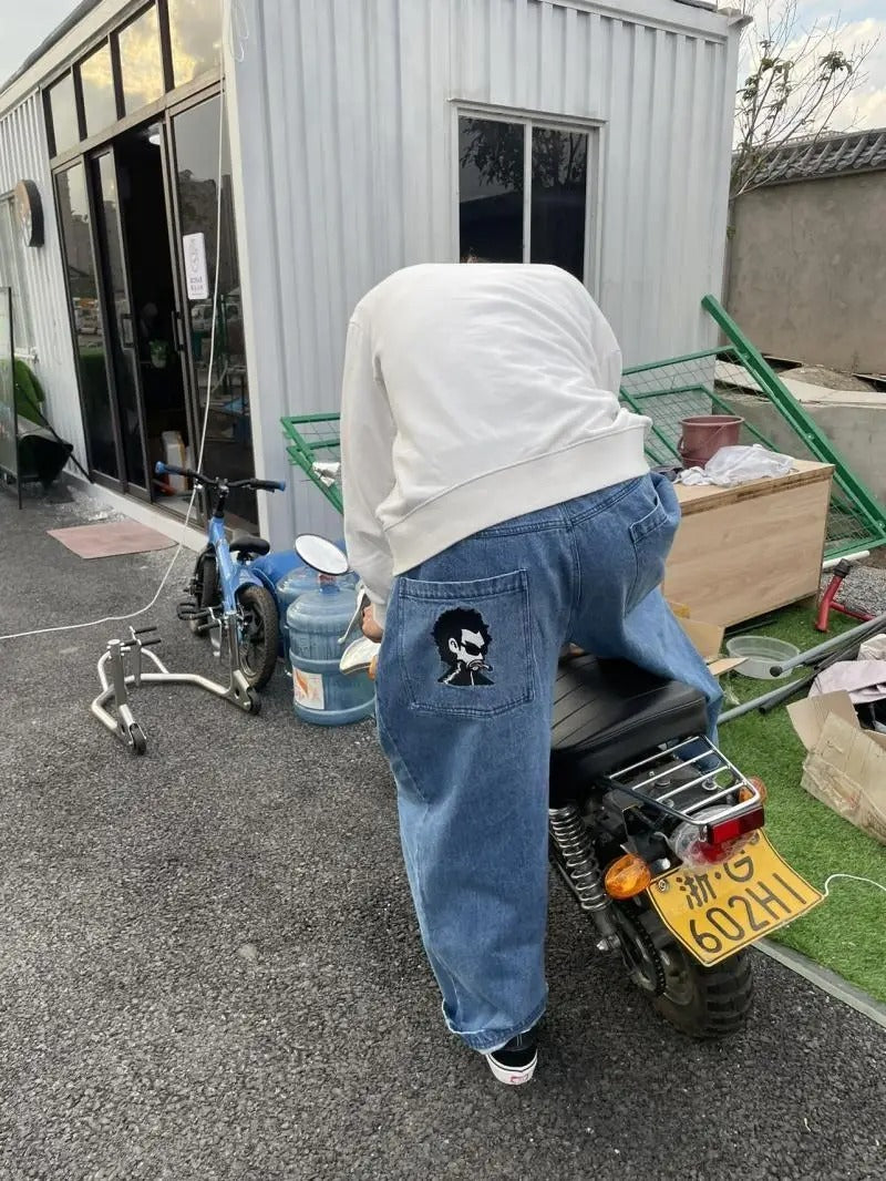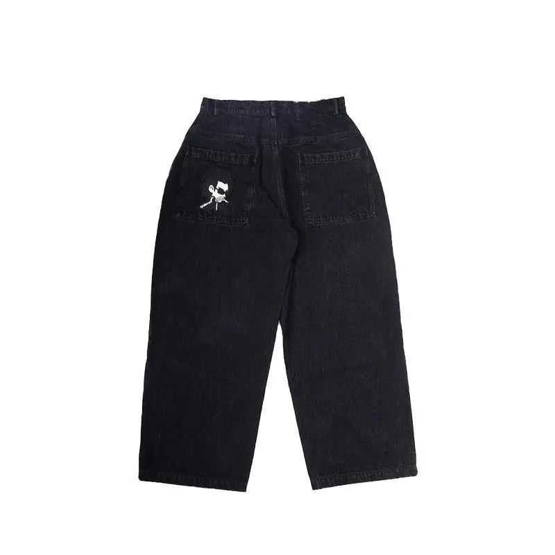 Embrace a retro vibe with Trevor's embroidered wide-leg jeans. Crafted from thick denim, these jeans offer a youthful style with a mid-high waist. Available in washed black and blue, they feature a secure zipper fly. Made from 100% cotton, they promise comfort and durability. Perfect for casual outings with a touch of flair. Available in sizes S to XL.